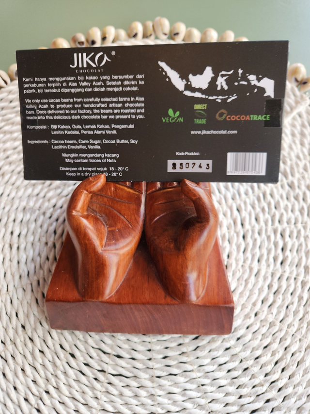 Originaire des terres volcaniques de Sumatra, ce chocolat révèle des arômes profonds, légèrement épicés, avec une belle longueur en bouche.